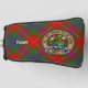 Clan Fraser crest badge surrounded by a strap and buckle over tartan background. Custom text.