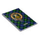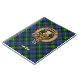 Clan Gordon crest badge surrounded by a strap and buckle over tartan background. Custom text.
