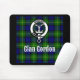 Show your Scottish pride! Clan Gordon crest badge with text on background of clan tartan.