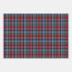 Gift wrap in Clan Gordon tartan variations. One sheet each of Clan Gordon tartan (blue and green plaid), Clan Gordon Dress tartan (blue, green, and white plaid), and Clan Gordon Red tartan (red, green, and blue plaid). Choose from matte or semi-gloss paper.