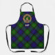 Clan Gunn crest badge surrounded by a strap and buckle over tartan background. Custom text.