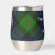 Clan Gunn crest badge surrounded by a strap and buckle over tartan background. Custom text on both sides.