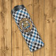 Clan Haig crest badge surrounded by a strap and buckle over check tartan background. Custom text.