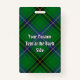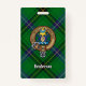 Clan Henderson crest badge surrounded by a strap and buckle over tartan background. Custom text.