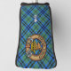 Clan Keith crest badge surrounded by a strap and buckle over tartan background. Custom text.