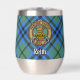 Clan Keith badge de crête entouré d'une sangle et boucle sur l'arrière - plan tartan. Texte personnalisé des deux côtés.