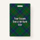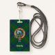Clan Kennedy crest badge surrounded by a strap and buckle over tartan background. Custom text.