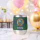 Clan Kennedy crête badge entouré d'une sangle et boucle sur l'arrière - plan tartan. Texte personnalisé des deux côtés.