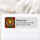 Clan Kerr crest badge surrounded by a strap and buckle over tartan background. Custom text fields for name and address.