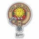 Clan Kerr crest badge surrounded by a strap and buckle over tartan background. Custom text.
