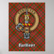Clan MacAlister crest badge surrounded by a strap and buckle over tartan background. Custom text.