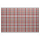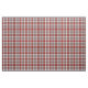 Fabric with the Clan MacAlister Dress tartan, a traditional Scottish plaid pattern in bright red, forest green, and creamy white with sky blue and yellow accents. Pattern repeats every 4". Special order larger scale via https://plaidwerx.com/contact.htm