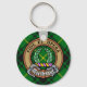 Clan MacArthur crest badge surrounded by a strap and buckle over tartan background. Custom text on both sides.