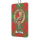 Clan MacAulay crest badge surrounded by a strap and buckle over tartan background. Custom text on both sides.