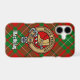 Clan MacAulay crest badge surrounded by a strap and buckle over tartan background. Custom text.