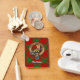 Clan MacAulay crest badge surrounded by a strap and buckle over tartan background. Custom text on both sides.