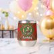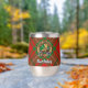 Clan MacAulay badge crête entouré d'une sangle et boucle sur l'arrière - plan tartan. Texte personnalisé des deux côtés.