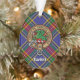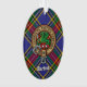 Clan MacBeth badge de crête entouré d'une sangle et boucle sur l'arrière - plan tartan. Texte personnalisé des deux côtés.