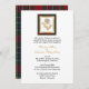This elegant Scottish clan MacLean / MacClain tartan plaid wedding invitation has graphics of a golden thistle in a MacLean plaid and gold frame, on a white background. The back of the invitation is done in the red, green, blue, black and yellow MacLean plaid pattern. Personalize all the text to suit your wedding needs.