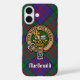Clan MacDonald badge crête entouré d'une sangle et boucle sur l'arrière - plan tartan. Texte personnalisé.