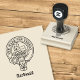 Clan MacDonald crest badge surrounded by a strap and buckle. Custom text.