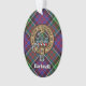 Clan MacDonald of Clanranald crest badge surrounded by a strap and buckle over tartan background. Custom text on both sides.