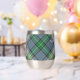 Clan MacDowall crest badge surrounded by a strap and buckle over tartan background. Custom text on both sides.