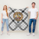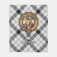 Clan MacFarlane Crest over Black and White Tartan Fleece Blanket