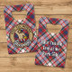 Clan MacFarlane insigne crête entouré d'une sangle et boucle sur l'arrière - plan écossais habillé. Texte personnalisé des deux côtés.
