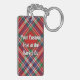 Clan MacFarlane écusson de crête entourée d'une sangle et boucle sur l'arrière - plan tartan rouge. Texte personnalisé des deux côtés.