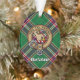 Clan MacFarlane badge de crête entouré d'une sangle et boucle sur l'arrière - plan tartan de chasse moderne. Texte personnalisé des deux côtés.