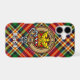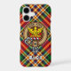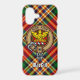 Clan MacGill crest badge surrounded by a strap and buckle over tartan background. Custom text.