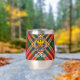 Clan MacGill insigne crête entouré d'une sangle et boucle sur l'arrière - plan tartan. Texte personnalisé des deux côtés.