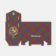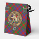 Clan MacGowan crest badge surrounded by a strap and buckle over tartan. Custom text and monogram.