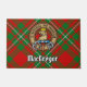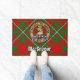 Clan Gregor of MacGregor crest badge surrounded by a strap and buckle over tartan background. Custom text.