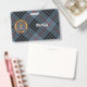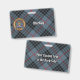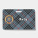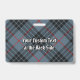 Clan MacKay crest badge surrounded by a strap and buckle over blue tartan background. Custom text on both sides.