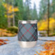 Clan MacKay crête badge entouré d'une sangle et boucle sur l'arrière - plan tartan bleu. Texte personnalisé des deux côtés.