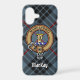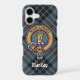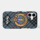 Clan MacKay crête badge entouré d'une sangle et boucle sur l'arrière - plan tartan bleu. Texte personnalisé.