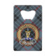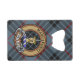 Clan MacKay crête badge entouré d'une sangle et boucle sur l'arrière - plan tartan bleu. Texte personnalisé des deux côtés.