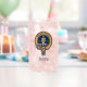 Clan MacKay badge crête entouré d'une sangle et boucle sur l'arrière - plan tartan. Texte personnalisé des deux côtés.