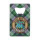 Clan MacKenzie badge crête entouré d'une sangle et boucle sur l'arrière - plan tartan habillé. Texte personnalisé des deux côtés.