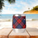 Clan MacLachlan badge de crête entouré d'une sangle et boucle sur l'arrière - plan tartan. Texte personnalisé des deux côtés.