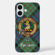 Clan MacLaren crest badge surrounded by a strap and buckle over tartan background. Custom text.