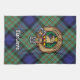 Clan MacLaren crest badge surrounded by a strap and buckle over tartan background. Custom text.