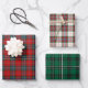 Gift wrap in Clan MacLean tartan variations. One sheet each of Clan MacLean of Duart tartan (red, forest green, and blue plaid), Clan MacLean Hunting tartan (green, black, and white plaid), and Clan MacLean Dress tartan (red, green, and white plaid). Choose from matte or semi-gloss paper.