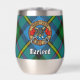Clan MacLeod badge de crête entouré d'une sangle et boucle sur l'arrière - plan tartan de chasse. Texte personnalisé des deux côtés.