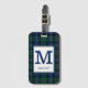 Luggage tag with the Clan MacLeod of Skye tartan, dated to 1906. Traditional Scottish plaid pattern in shades of blue and green, with black, yellow and red highlights. Personalize with your initial and surname on a light coloured plate for easy legibility.