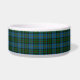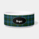 Stylish dog food dish with the colourful clan MacLeod tartan plaid pattern, around the dish, and an oval black text area, in the middle, for your pet's name. White text allows you to customize with your pet's name, for a personalized bowl your canine friend can be proud of.