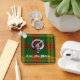 Stylish two-sided keychain design features Scottish Clan MacMillan crest badge and text on tartan background
