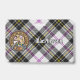 Clan MacPherson crest badge surrounded by a strap and buckle over dress tartan background. Custom text on both sides.